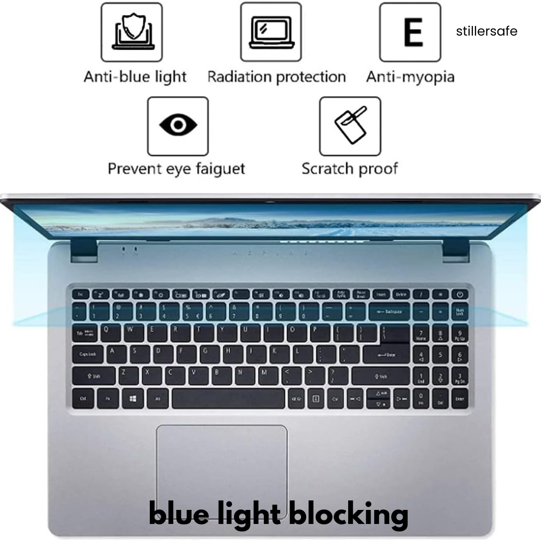 Extended exposure to blue light and HEVL heat from laptops and phones can increase dark pigmentation and accelerate photo-ageing caused by light exposure. These effects may also contribute to sleep disturbances, fatigue, and dry-eye discomfort. Using a blue-light-blocking anti-glare screen protector helps reduce this exposure and supports healthier skin and eyes during long screen hours.